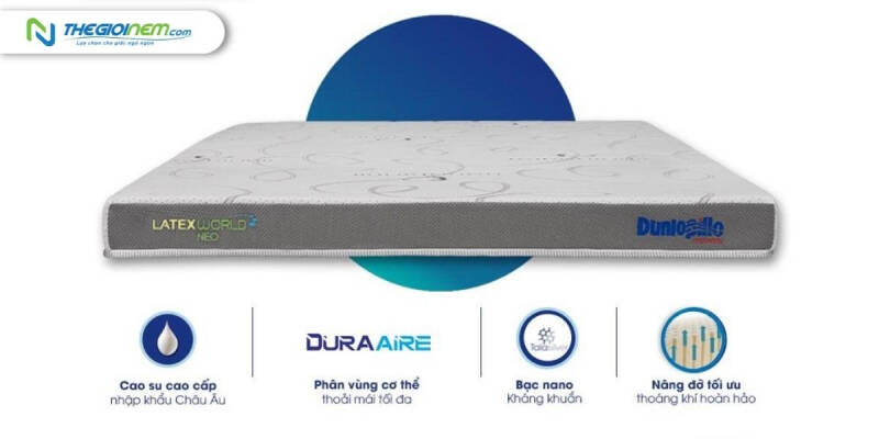 - Dunlopillo latex World Neo có độ cao 15cm