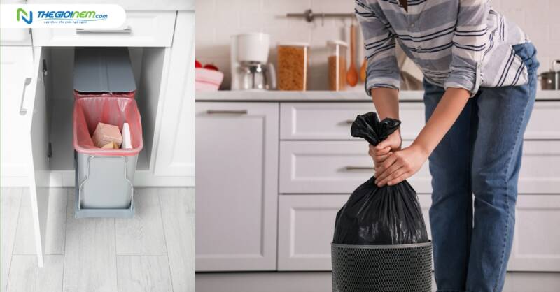 Để giải quyết vấn đề này, một gợi ý cho các chị em nội trợ là thay thế thùng rác cố định trong bếp bằng các túi rác tiện lợi và linh hoạt. Bạn có thể dễ dàng treo chúng ở những vị trí thuận tiện trong bếp, và khi có rác, chỉ cần quay sang túi rác và bỏ đi ngay lập tức. Ngoài ra, bạn cũng có thể treo nhiều túi để phân loại rác trước khi mang đi đổ, tăng tính tiện ích trong việc quản lý rác thải.